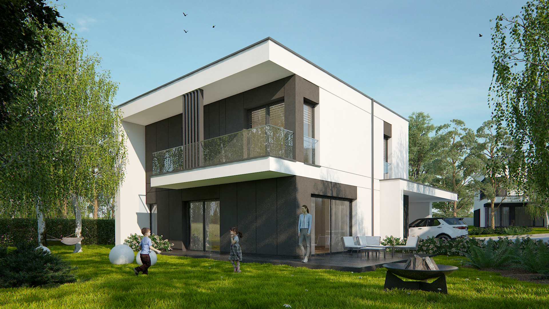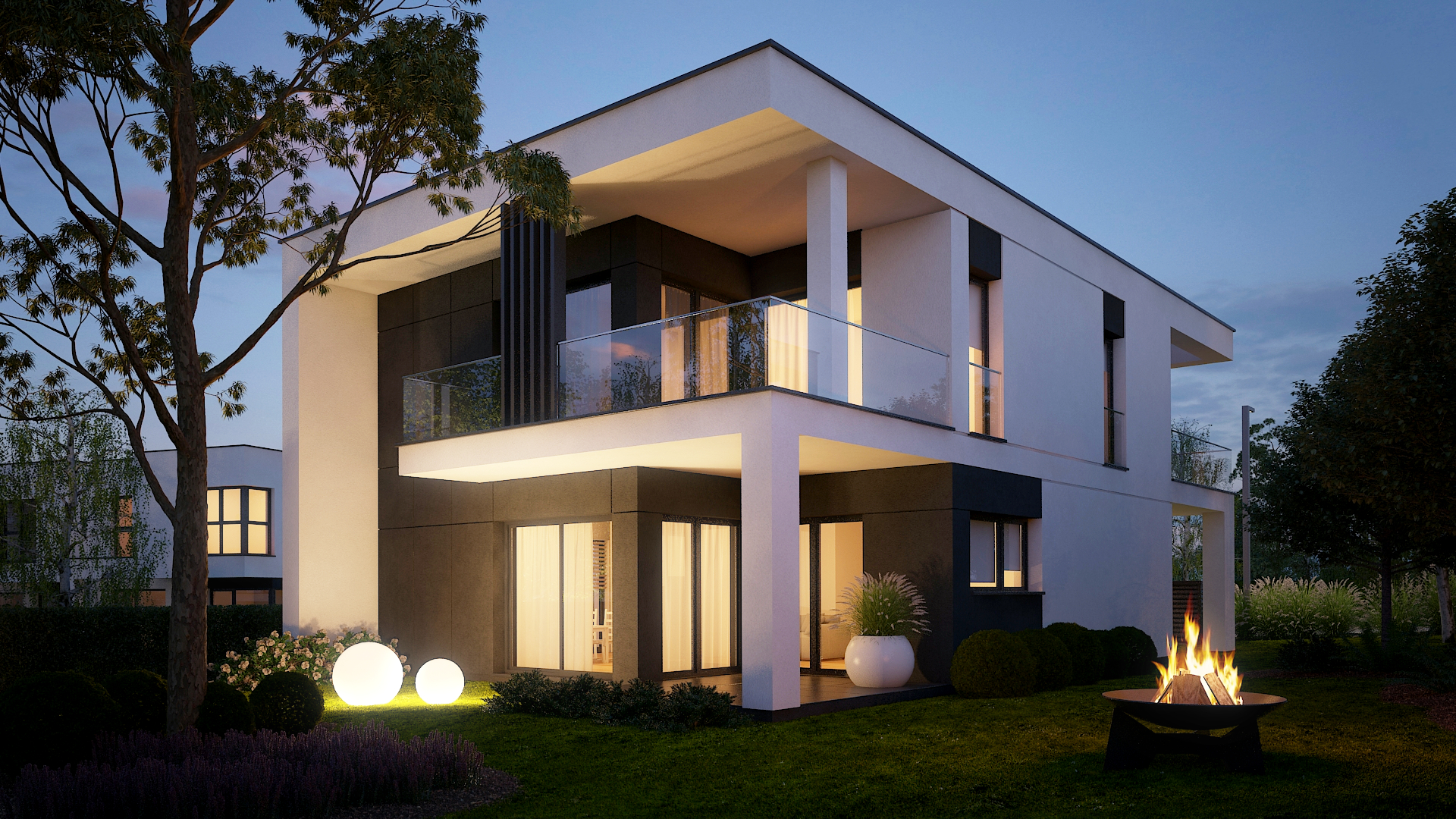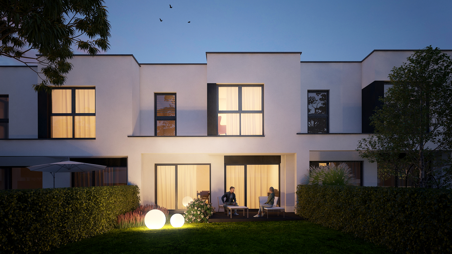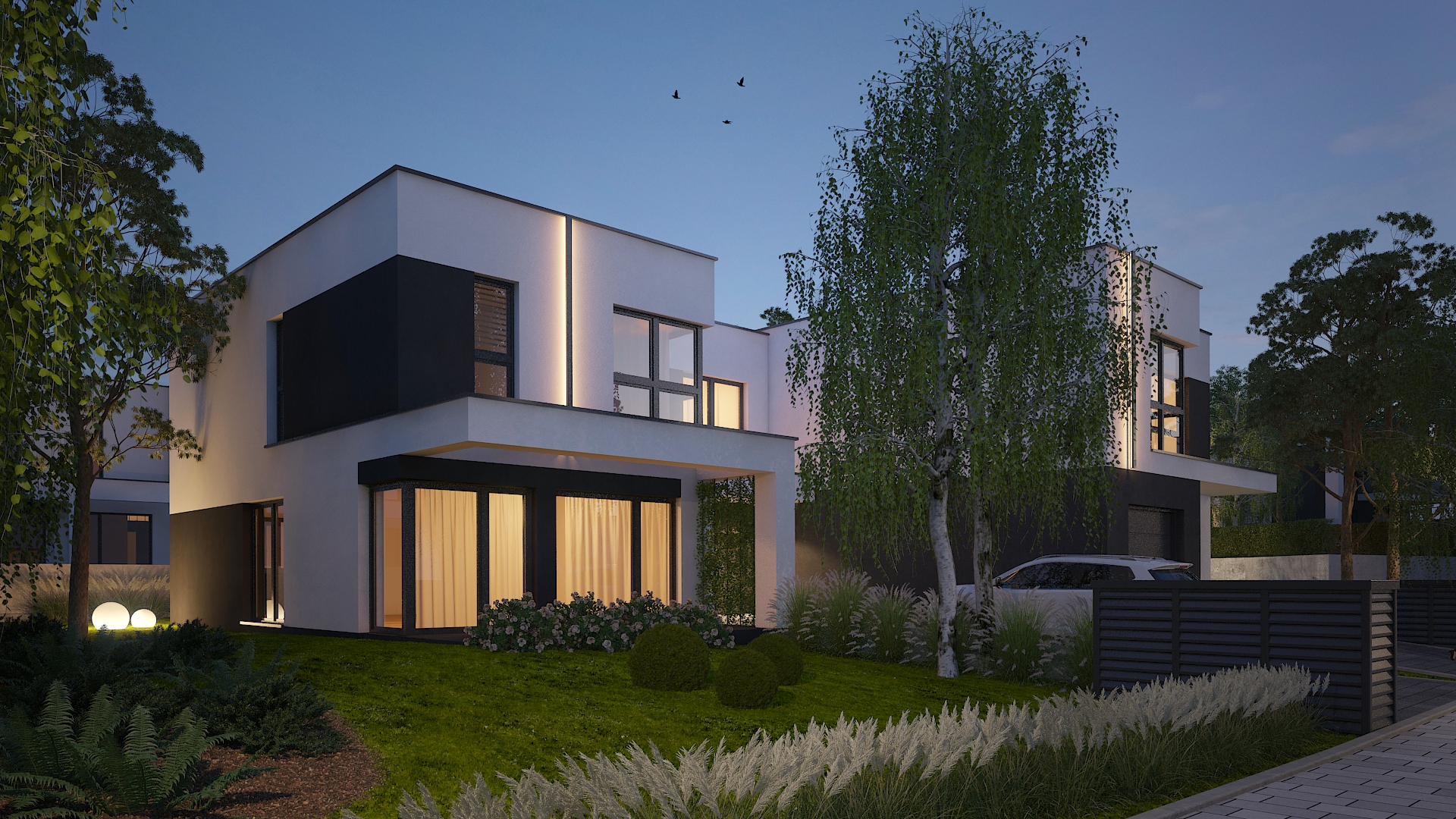 Dodajmy do tego wysublimowane wzornictwo, rozkłady pozwalające mieszkać niezwykle wygodnie oraz bardzo duże przeszklenia, a tworzy nam się obraz miejsca niezwykłego. Przewidzieliśmy również całościowe ogrzewanie podłogowe w każdym z domów, a także pompy ciepła jako źródło ogrzewania, czyli większe bezpieczeństwo energetyczne oraz bardziej ekologiczna energia.