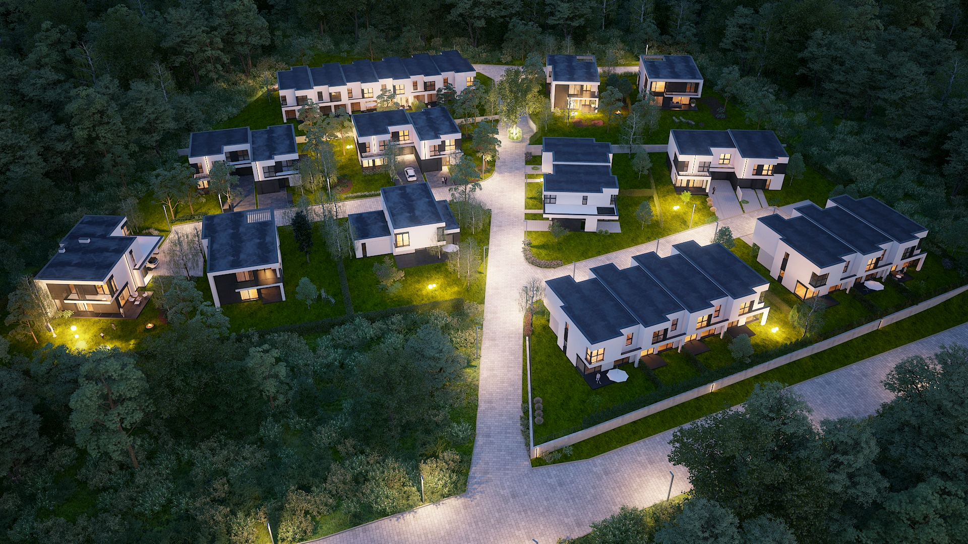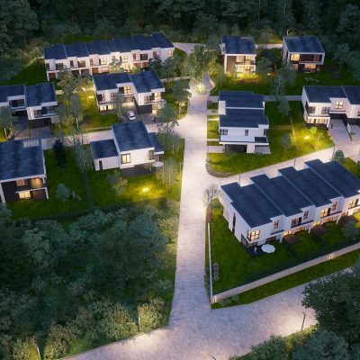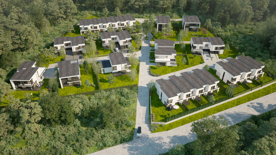 Naszym celem jest stworzenie przestrzeni, która będzie zróżnicowana i ciekawa architektonicznie, dlatego na osiedlu znajdziemy aż 10 różnych typów domów w zabudowie szeregowej, bliźniaczej oraz wolnostojącej.